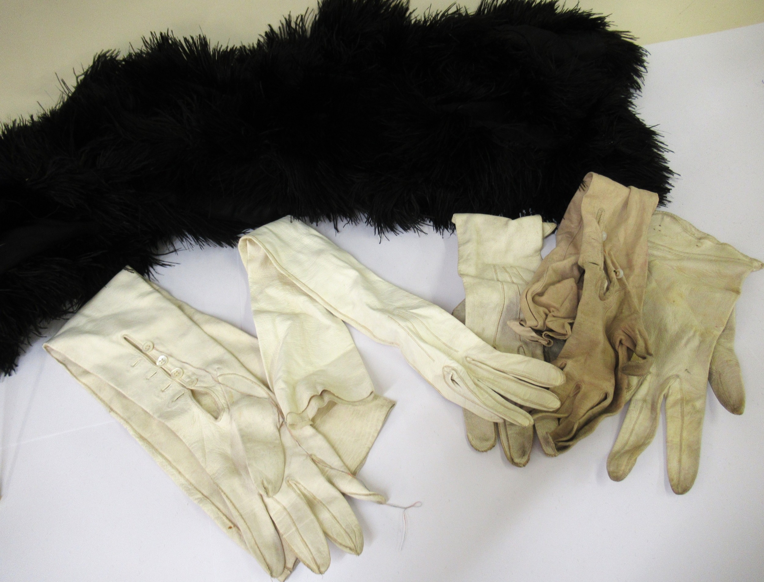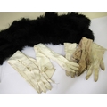 1920s Ladies black ostrich feather stole, together with a small quantity of ladies kid leather evening gloves