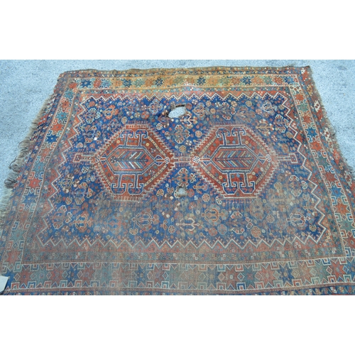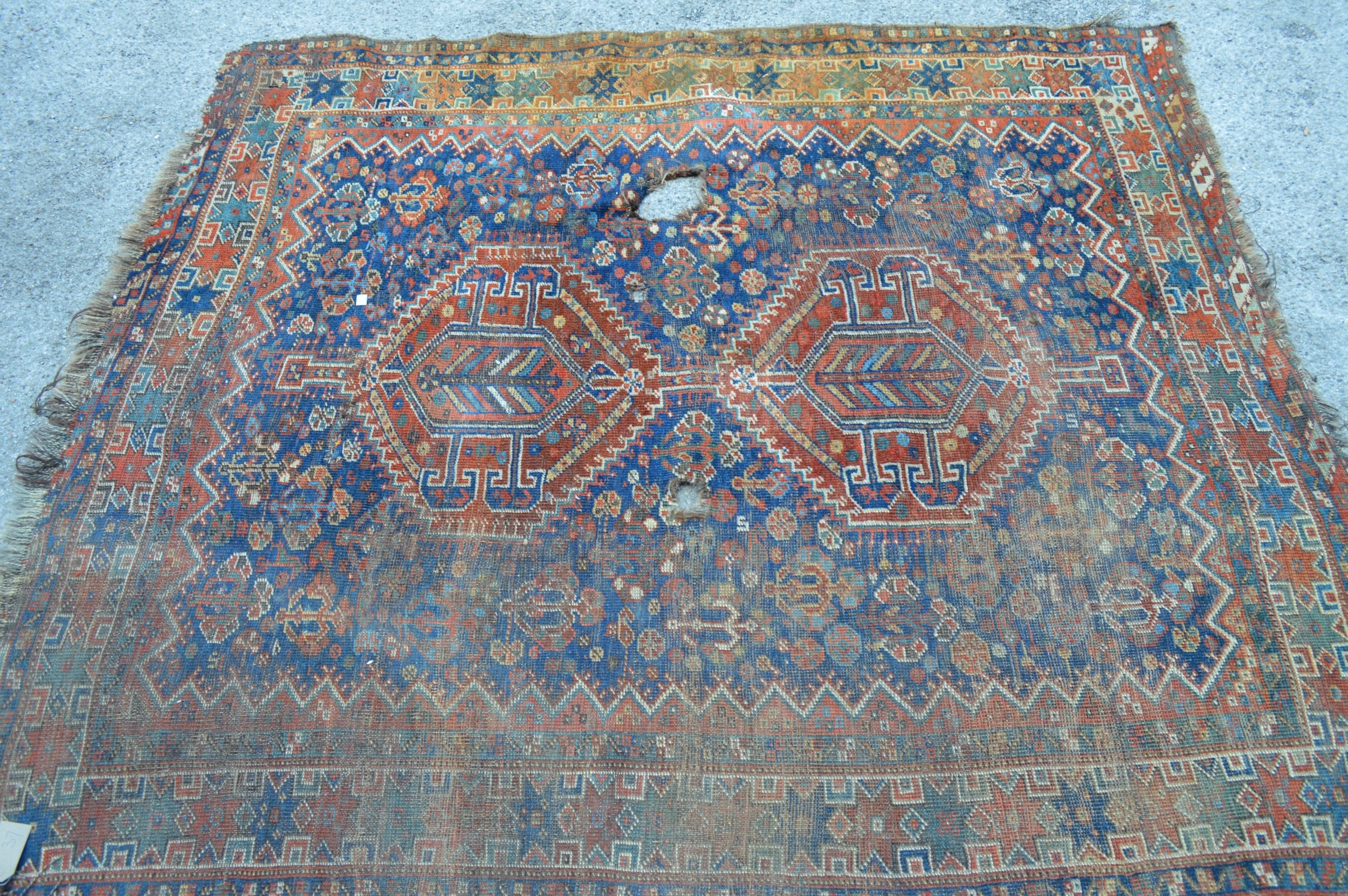 Hamadan (with damages), together with a Shiraz rug (with damages), the largest 140 x 210cm