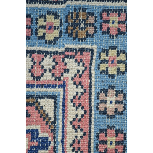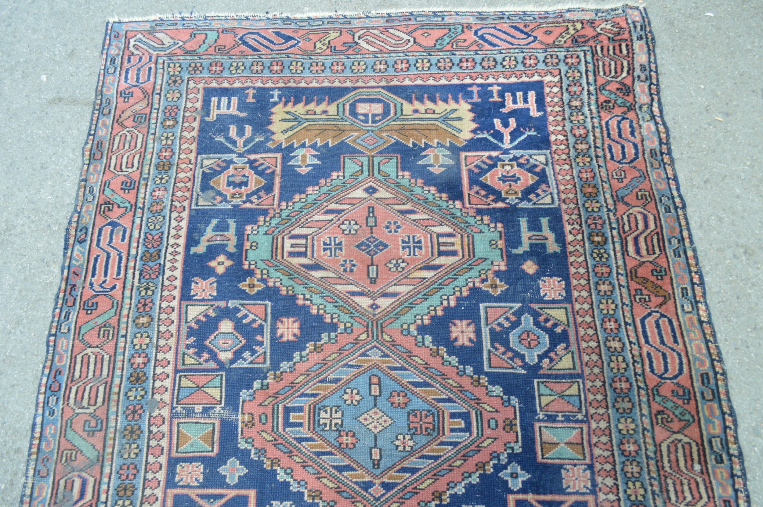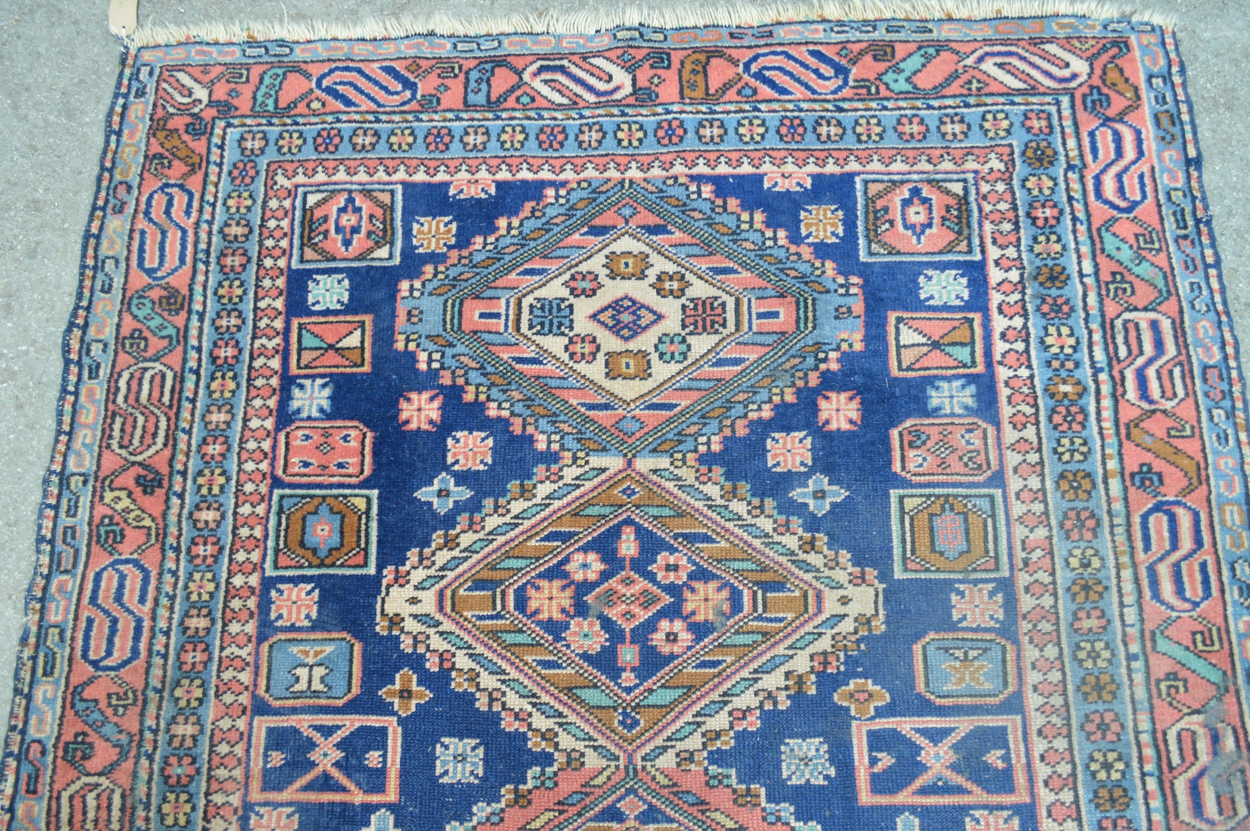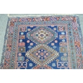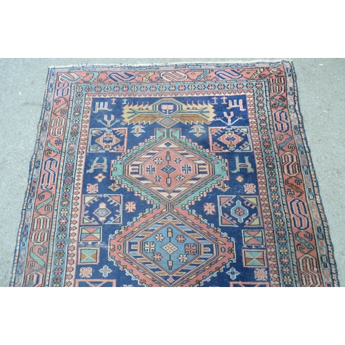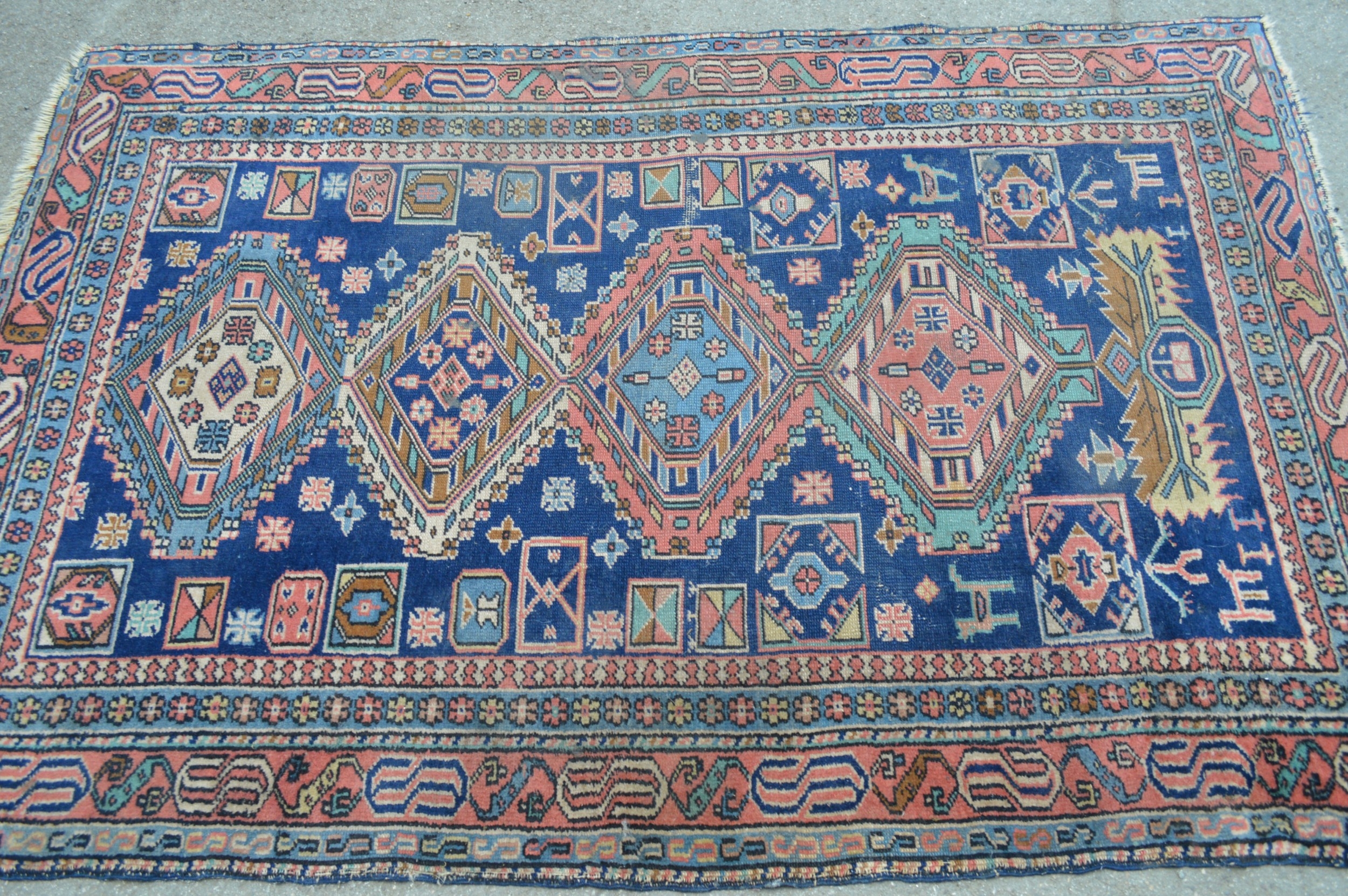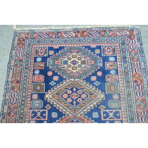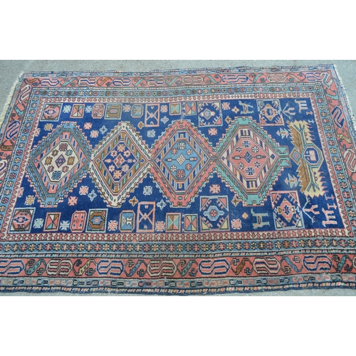 Kurdish rug with a quadruple pole medallion design on blue ground with borders, 195 x 128cm