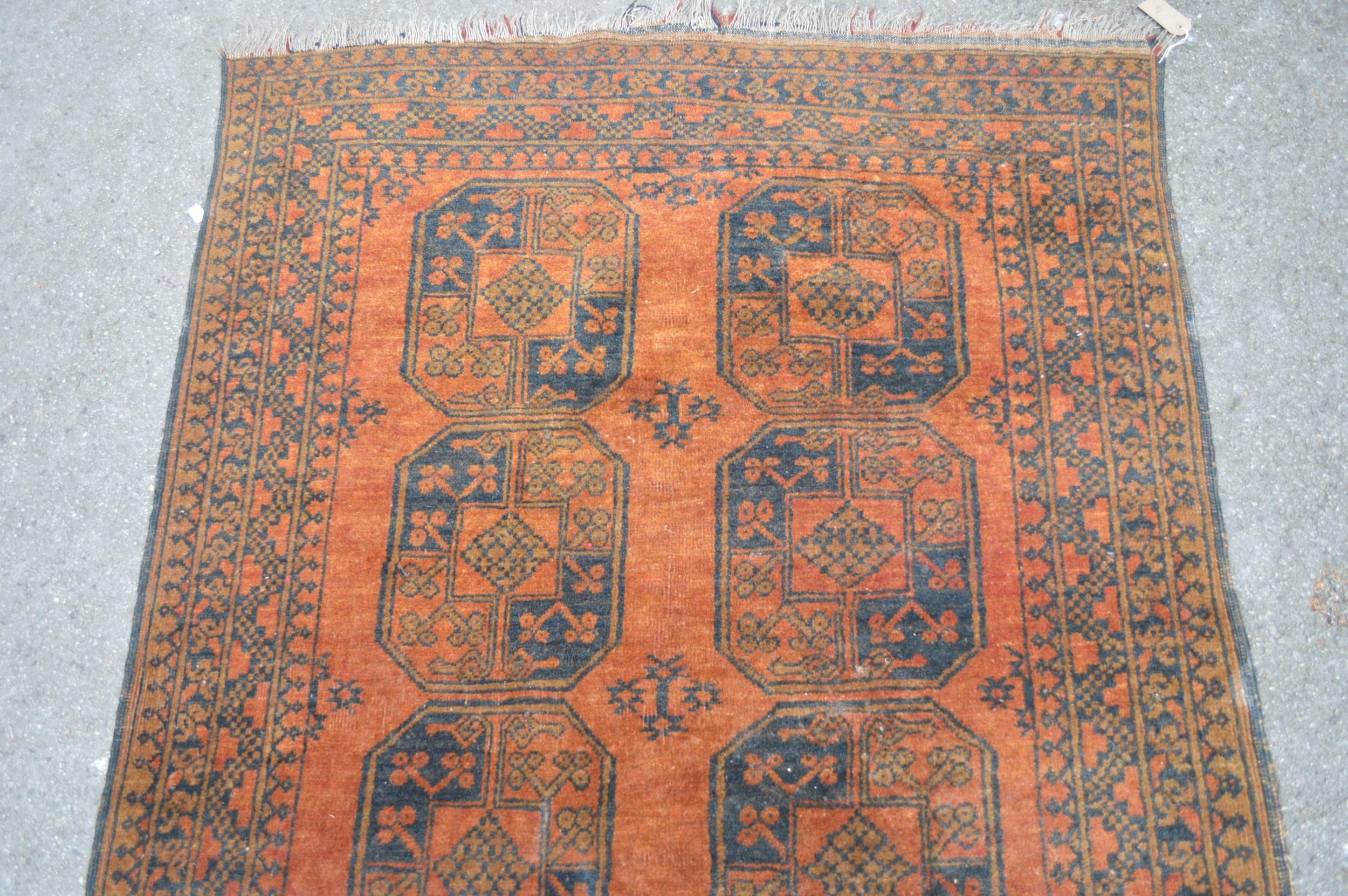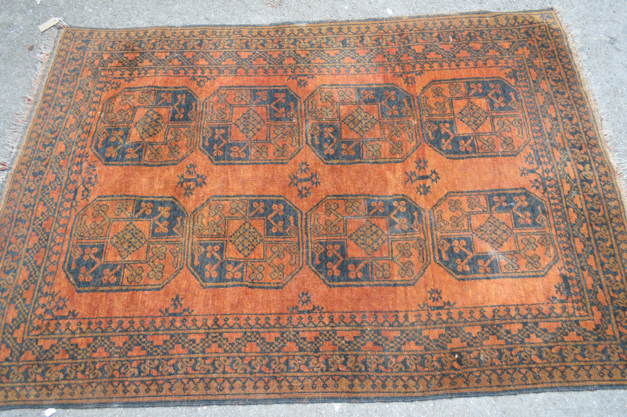 Afghan rug with two rows of four gols on a red ground, 170 x 118cm