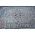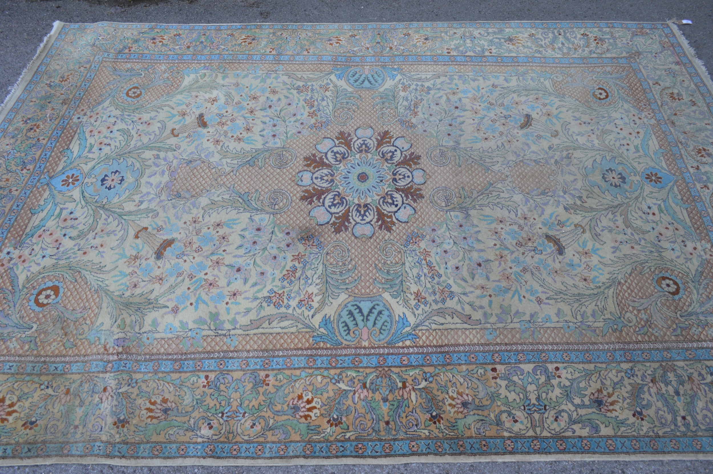 Small Sparta carpet with a medallion and floral design on a beige ground with borders, 270 x 187cm
