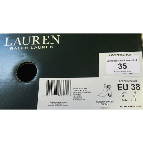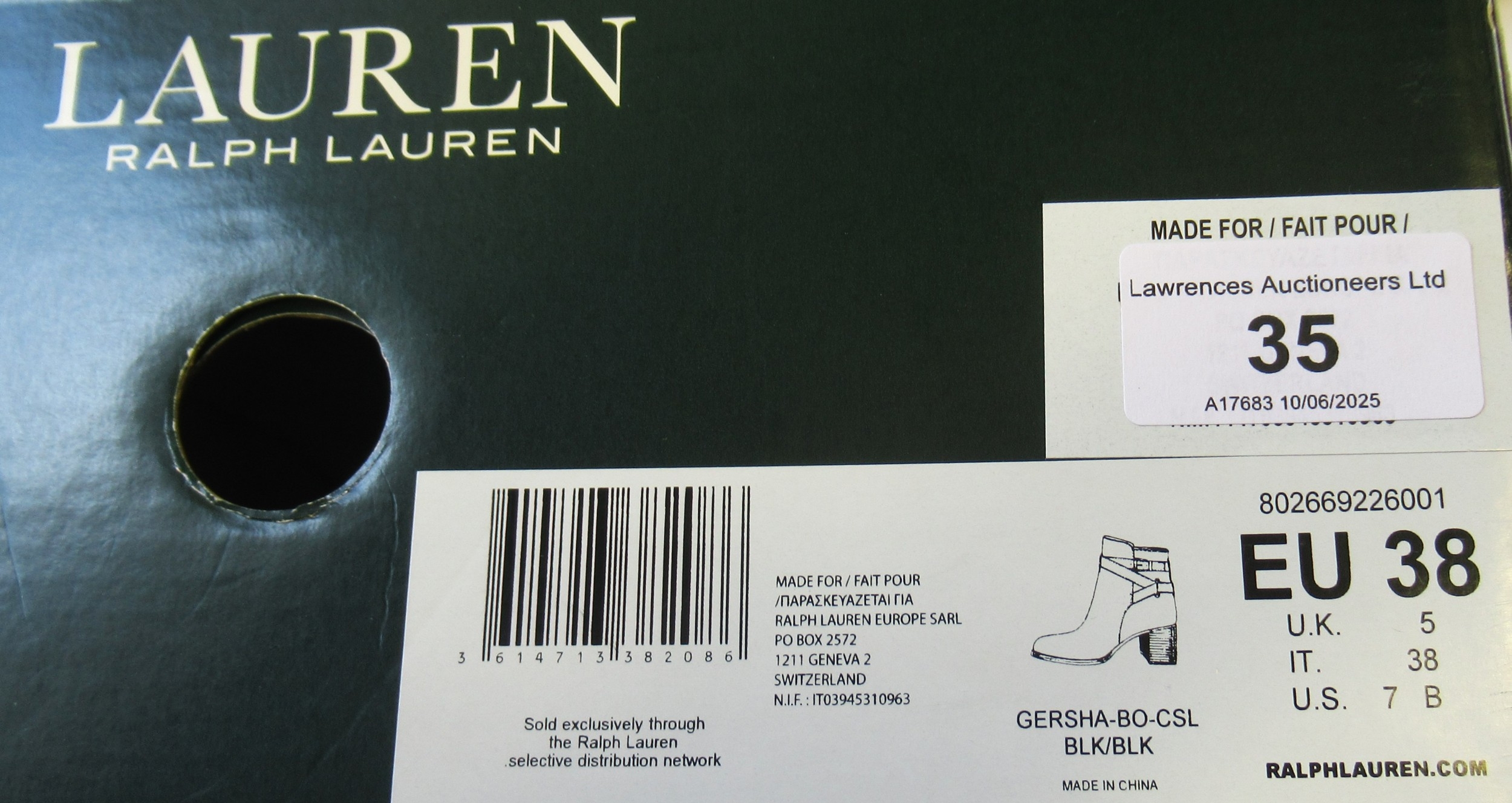 Ralph Lauren, pair of ladies Gersha leather ankle boots, size 5 and a pair of Ralph Lauren ladies leather loafers, size 5, both with original boxes and packaging