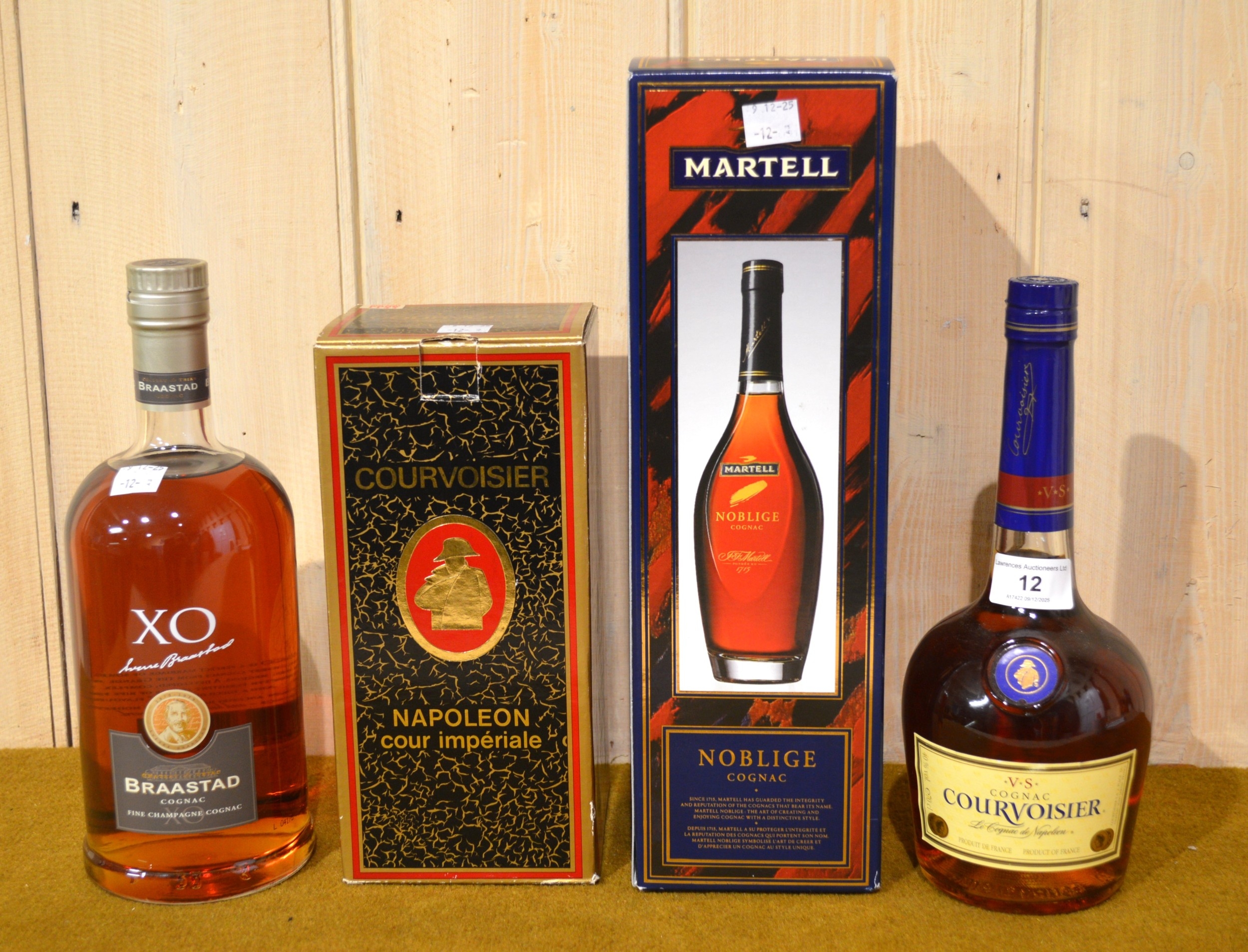 Four bottles of Cognac, including Courvoisier, Cour Imperiale and Martell Noblige