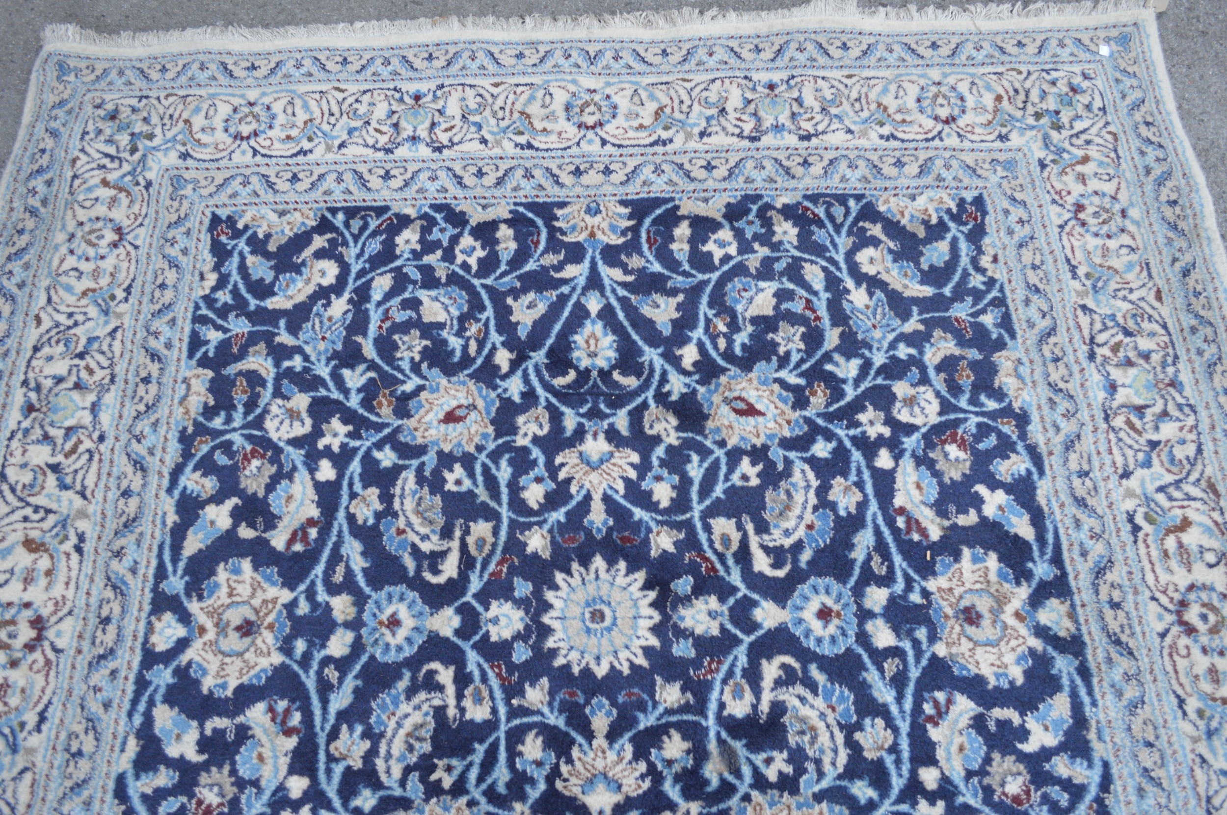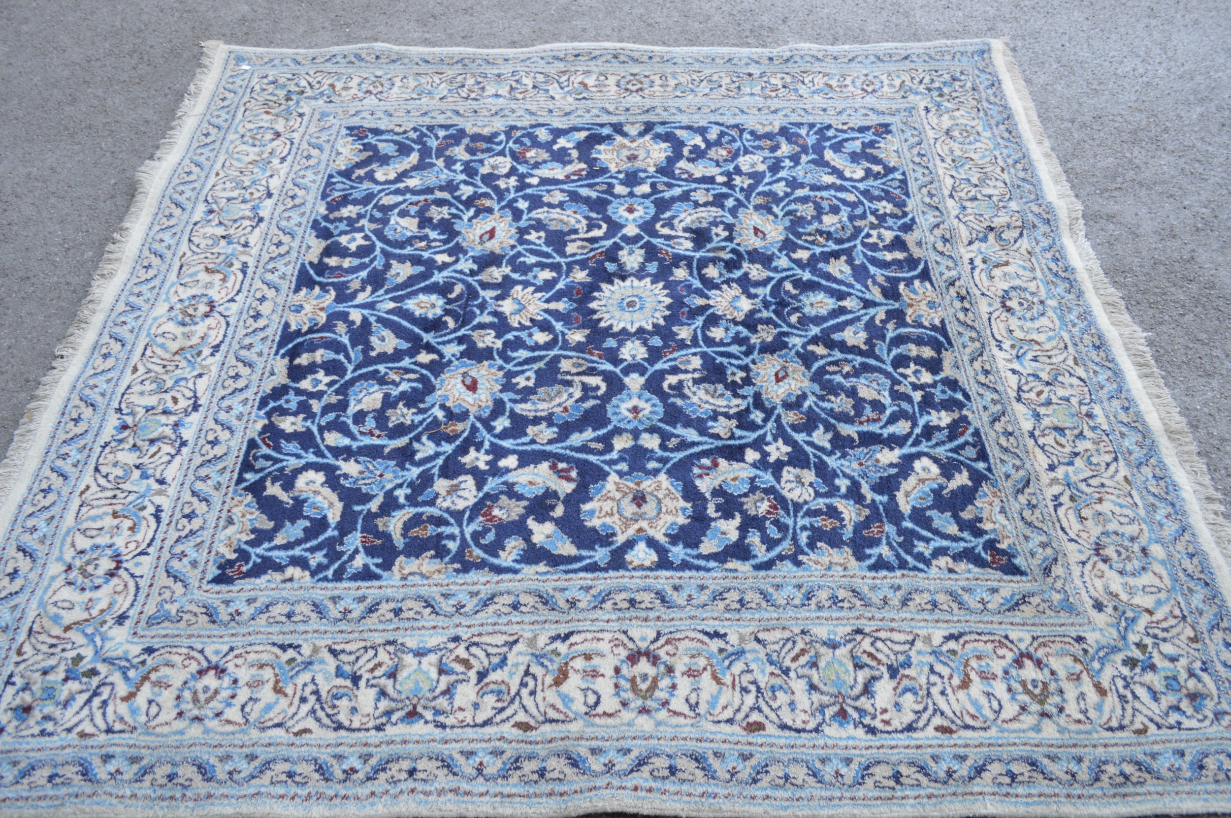 Indo Persian rug with an all-over palmette design on a blue ground with borders, 200 x 193cm approximately