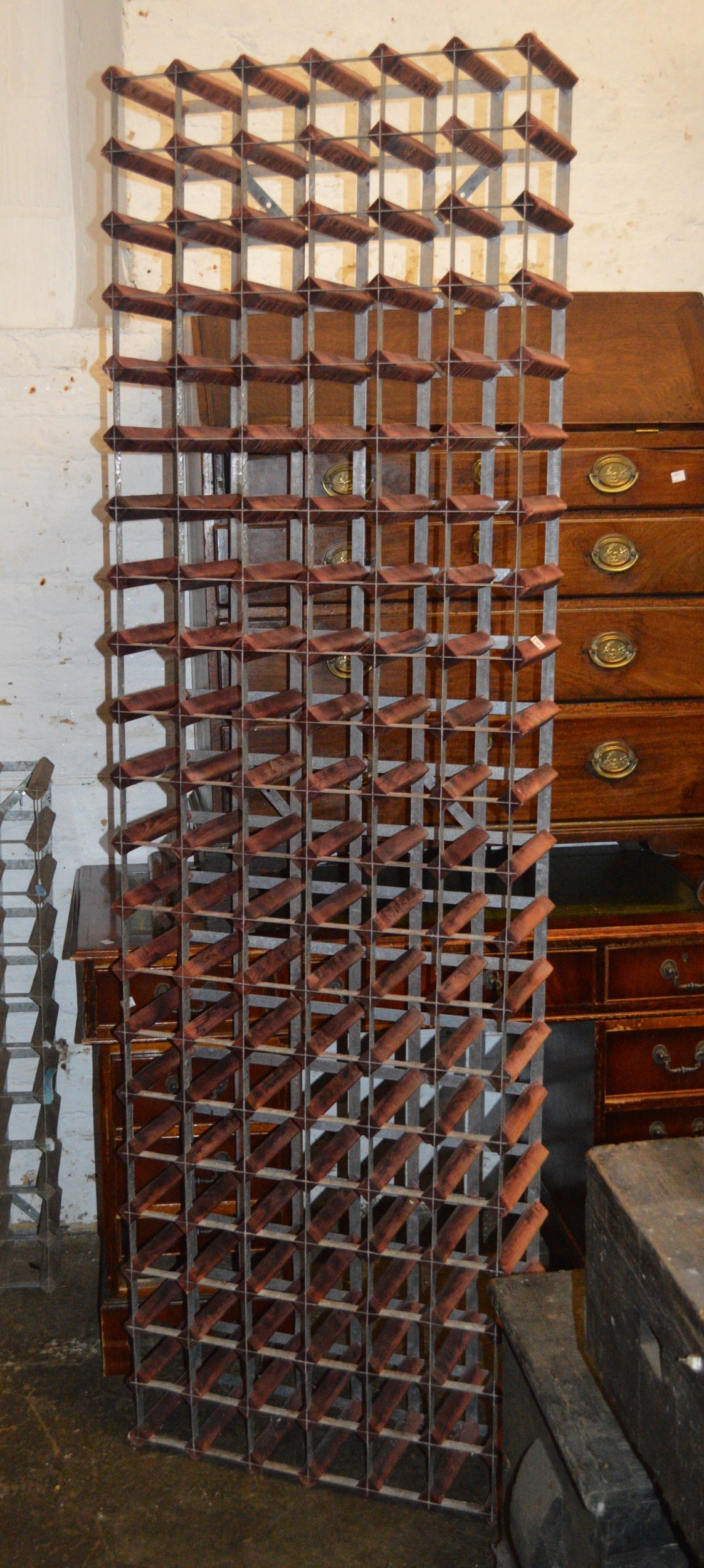 Large modern metal and wooden wine rack (126 bottles), 208 x 61.5cm