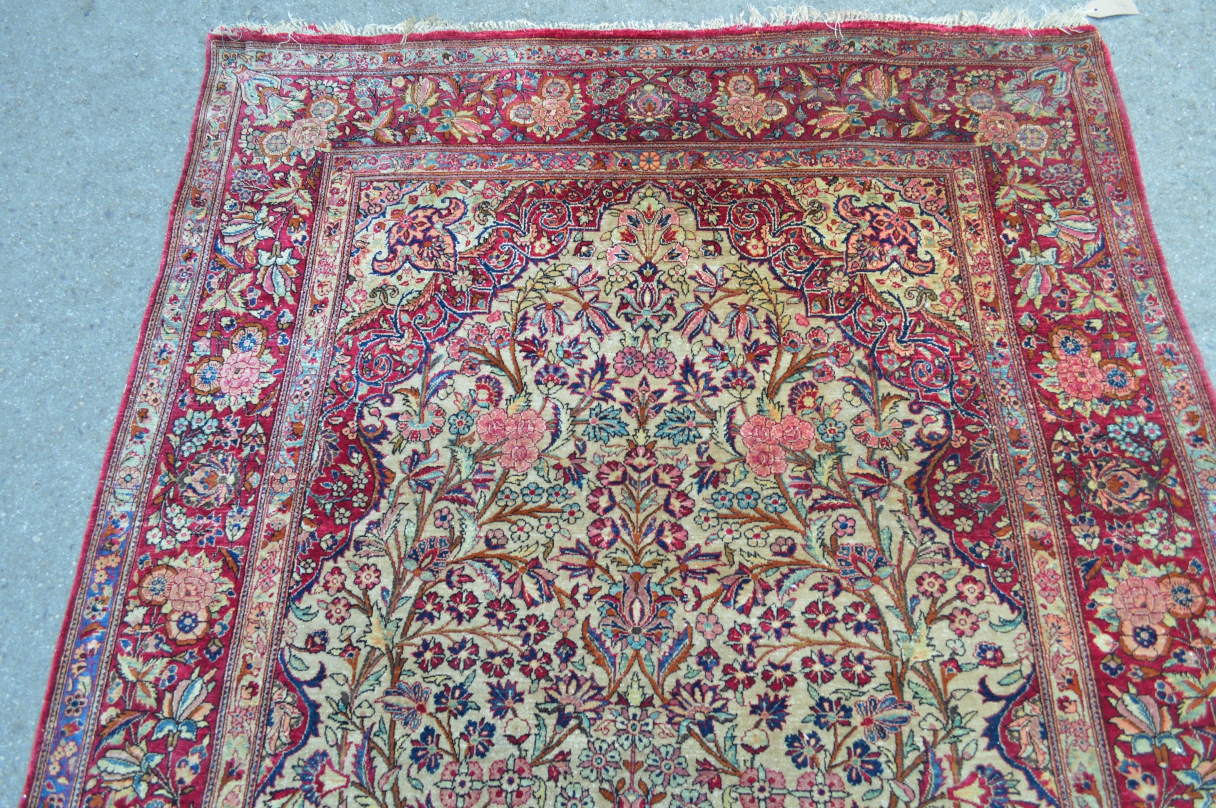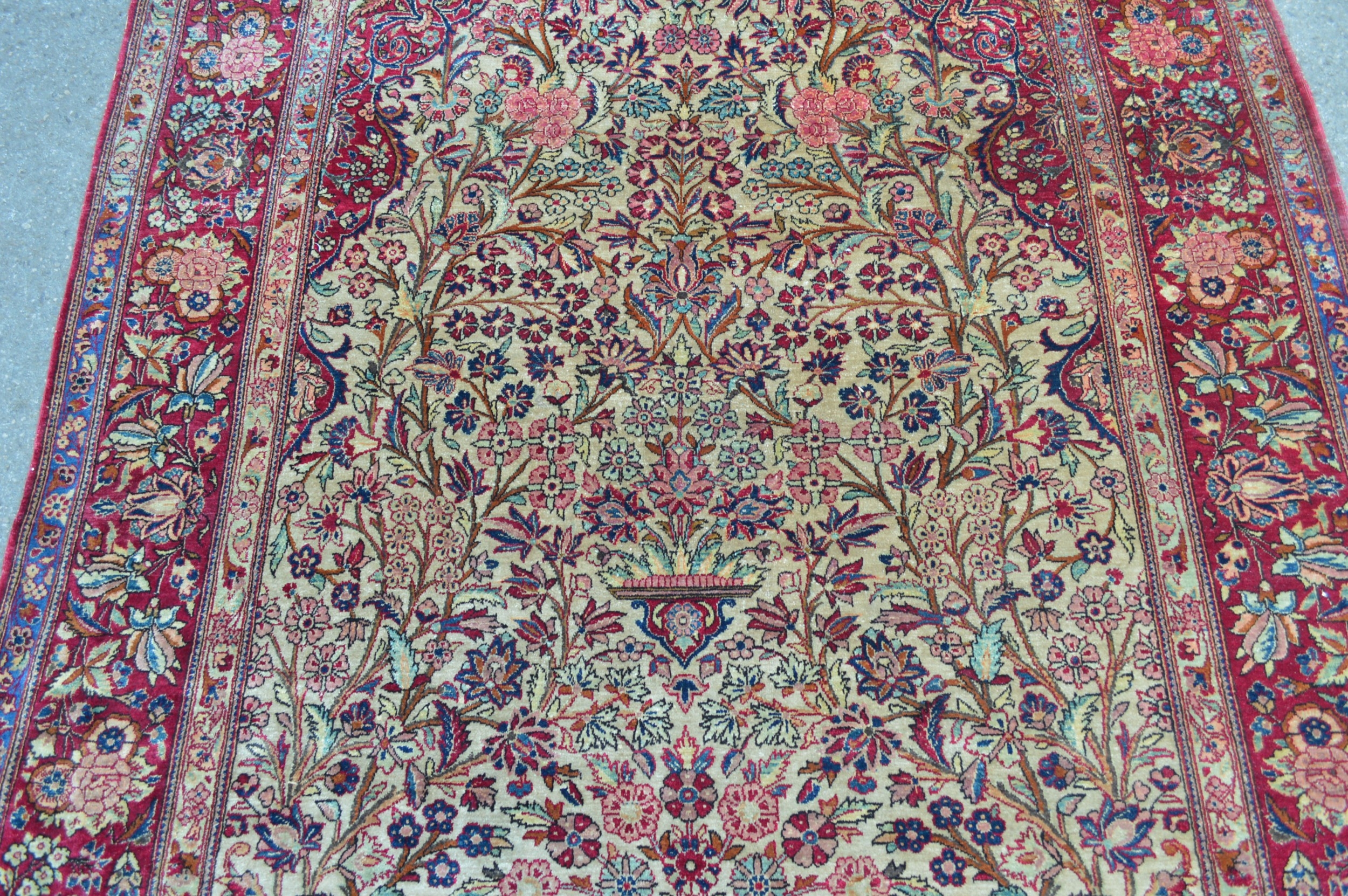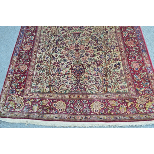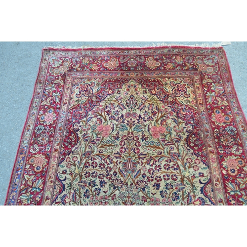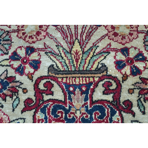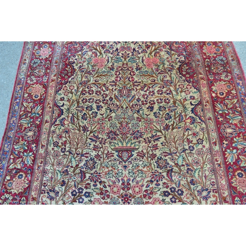 Kashan silk vase design prayer rug, the central Mihrab with an all-over floral design on an ivory ground with floral borders, 200 x 130cm