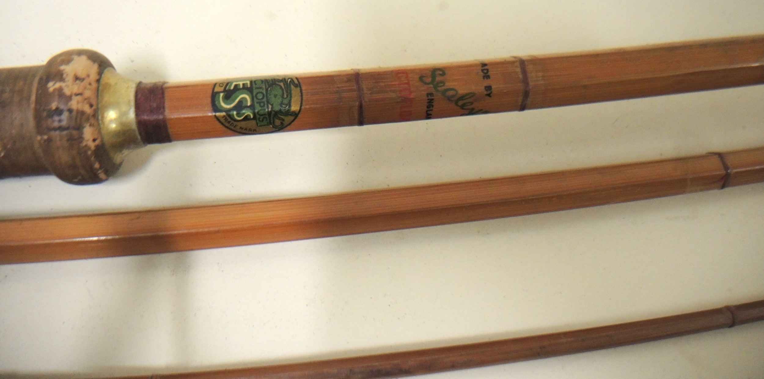 Sealey three section split cane fishing rod, in canvas case