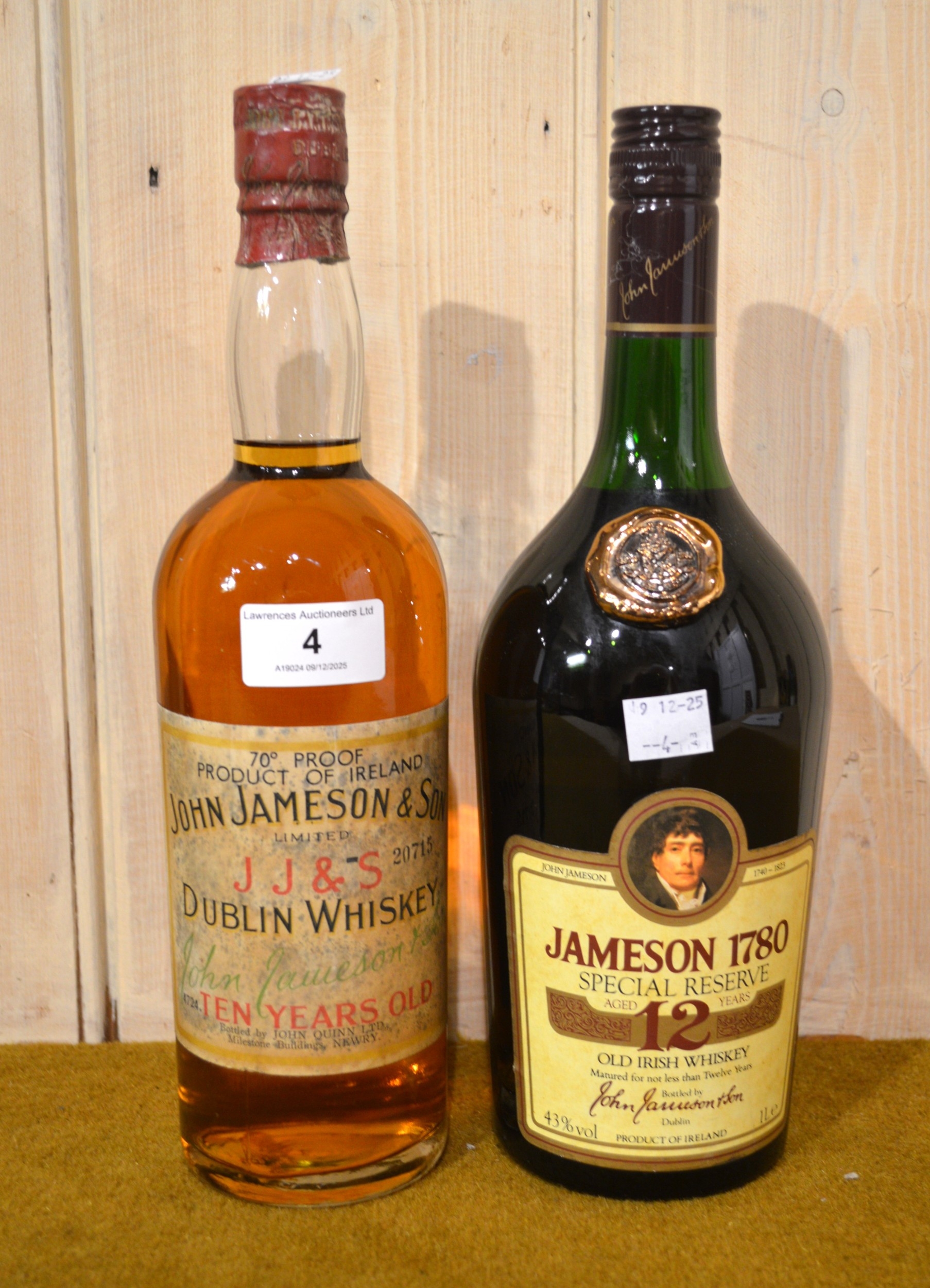 One bottle John Jameson and Son Ltd Dublin whiskey, 10yrs old, together with one bottle Jameson 1780 special reserve, aged 12yrs