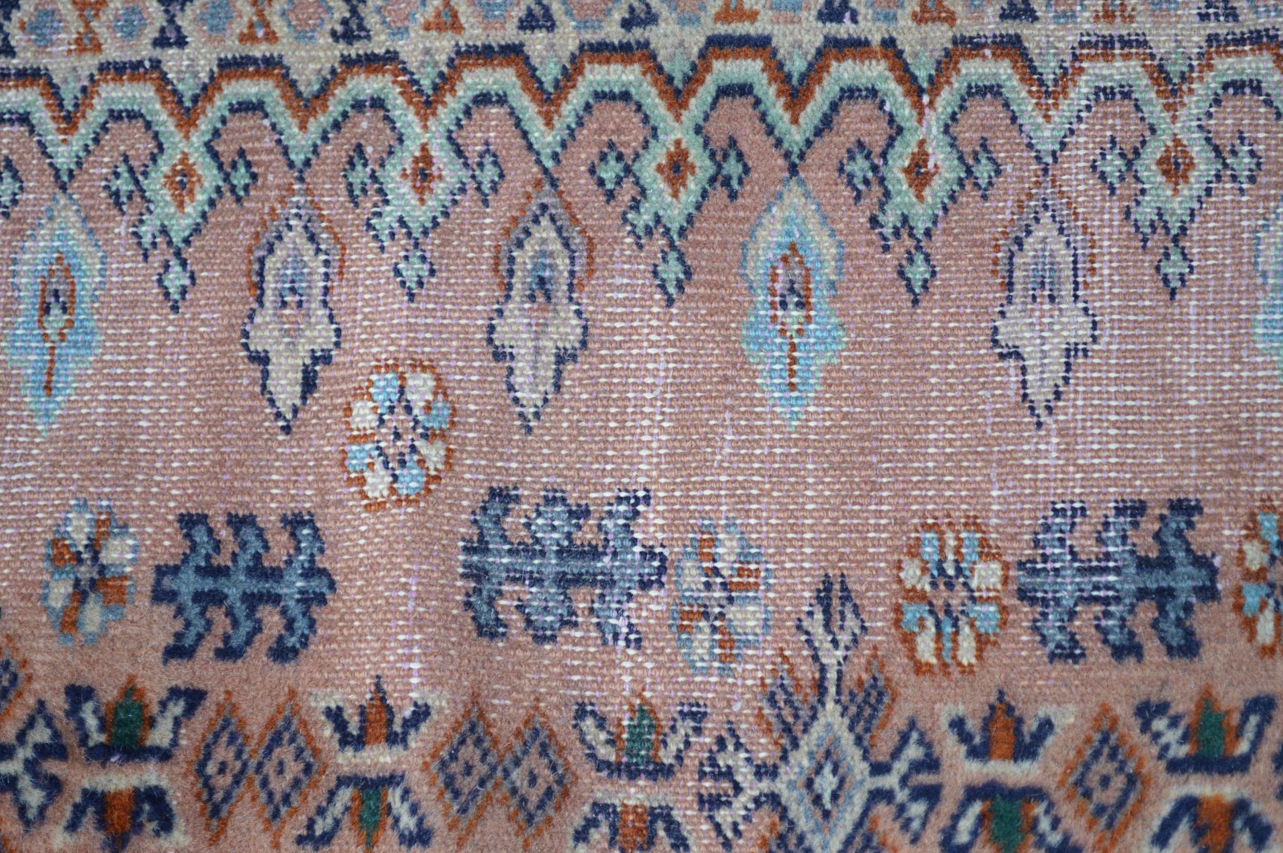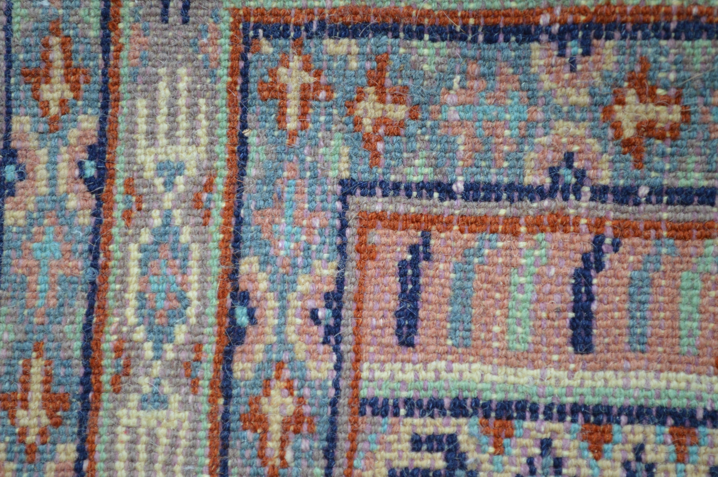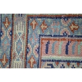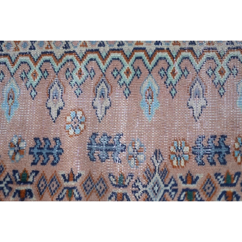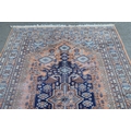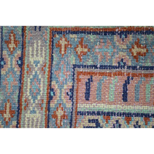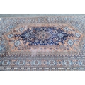 20th Century Indo-Persian rug, the central medallion with multiple borders on a pale orange and dark blue ground, 182 x 285cm