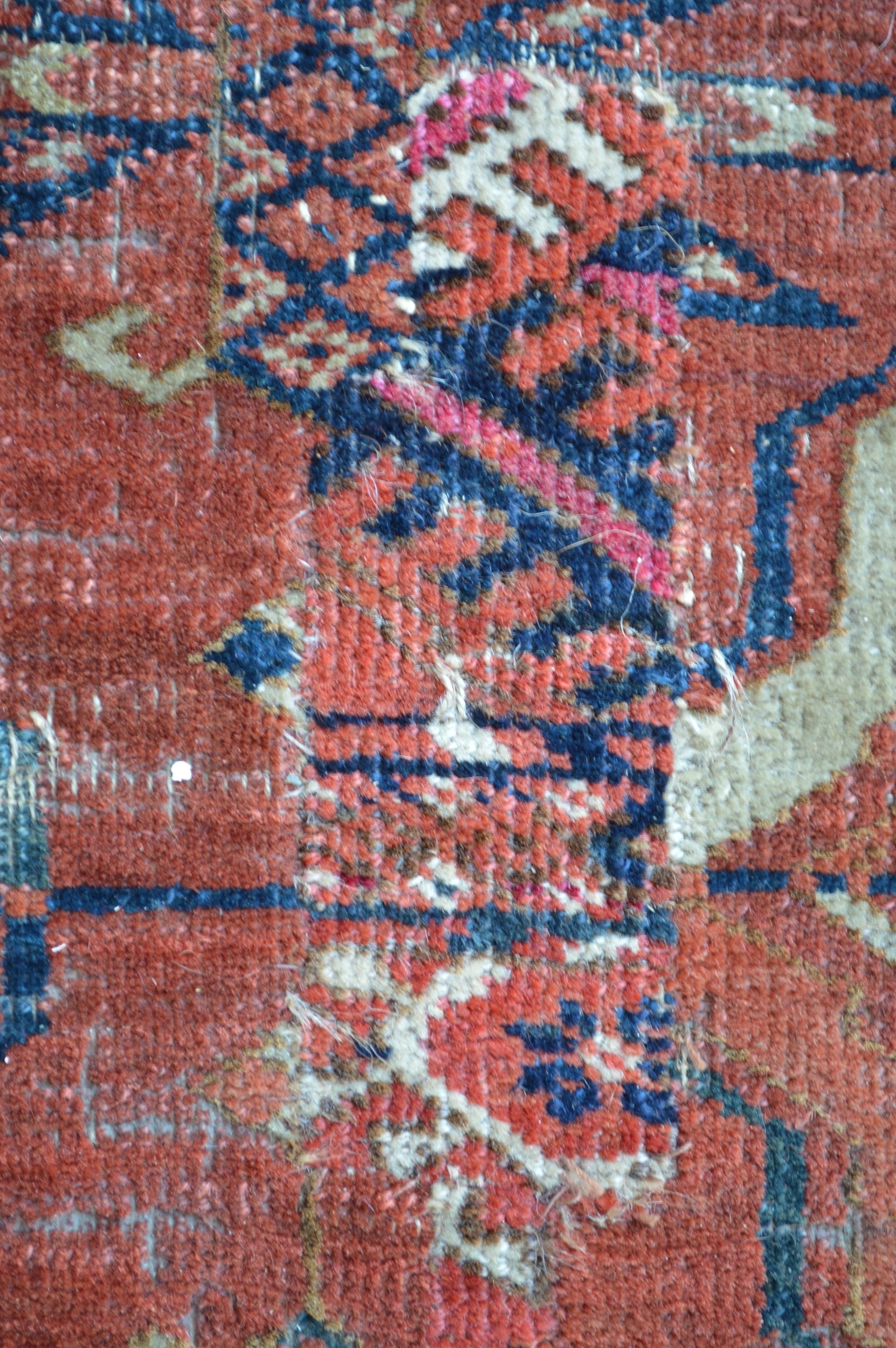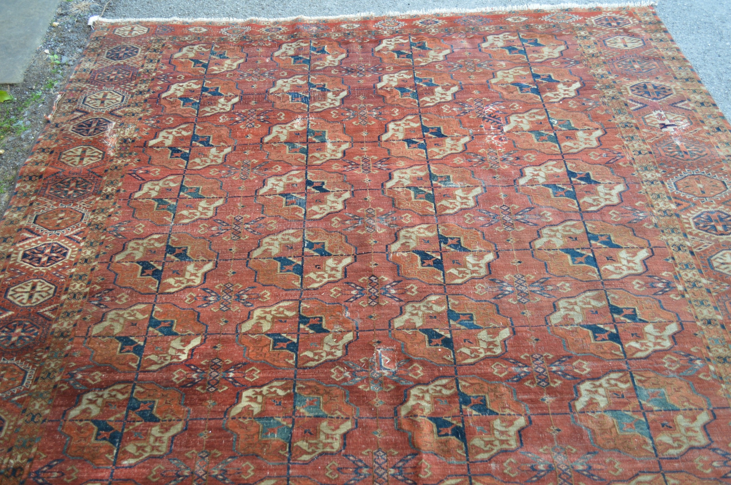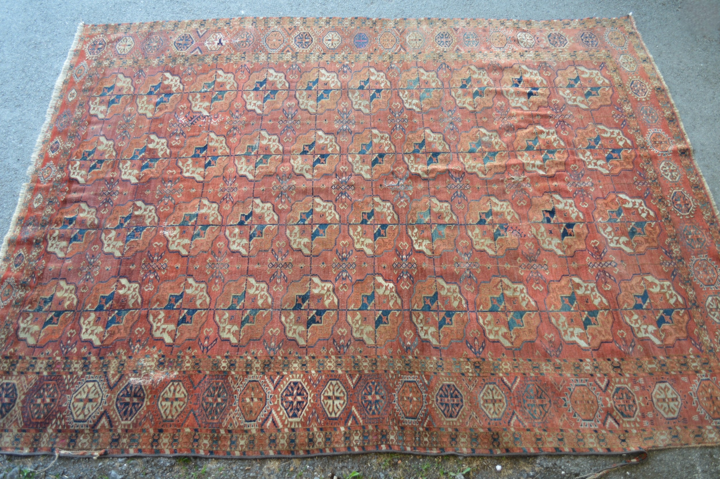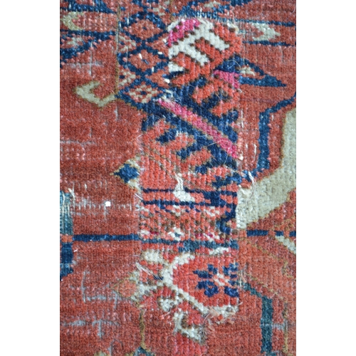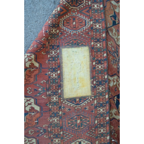 Antique Tekke carpet with four rows of ten gols on a red ground with borders (damages and wear), 245 x 195cm