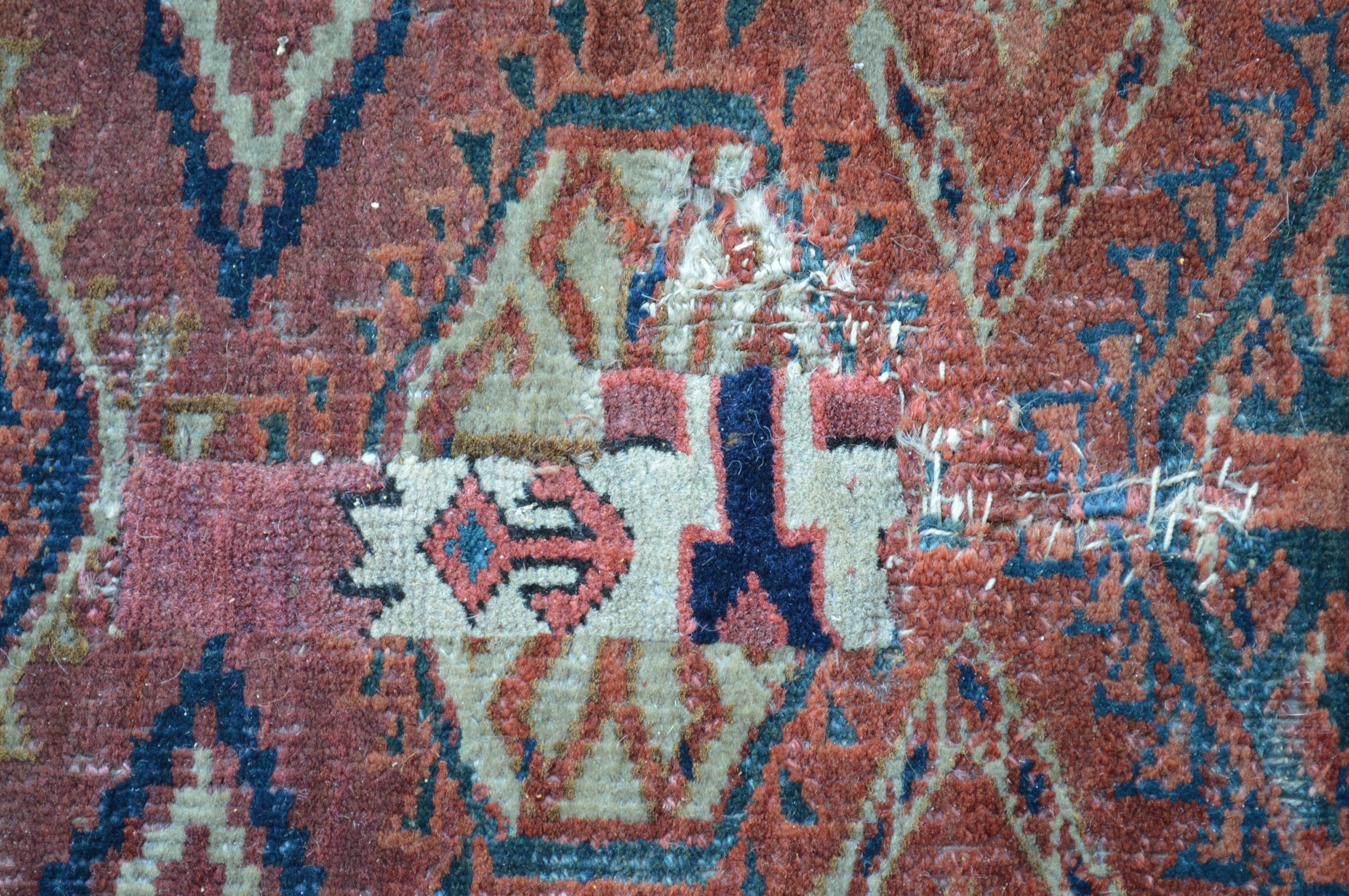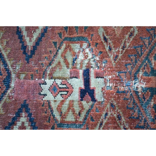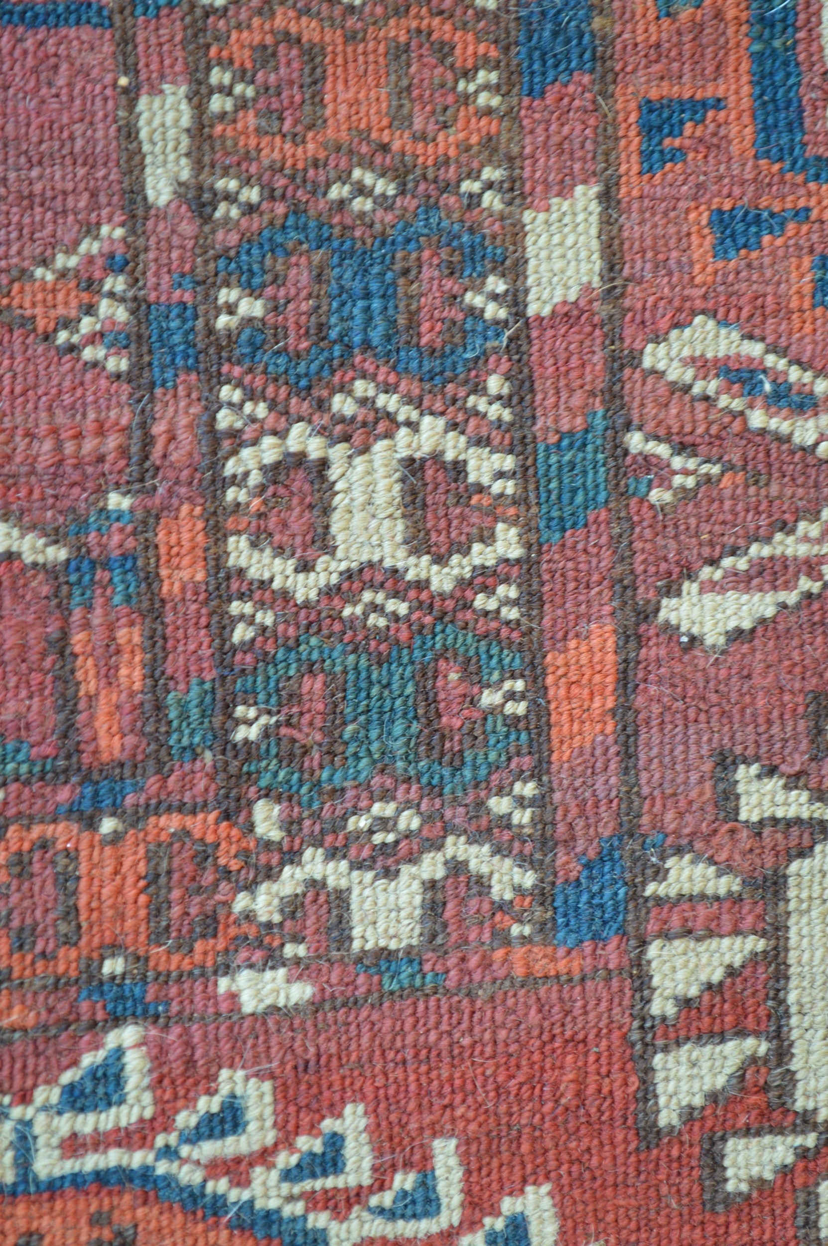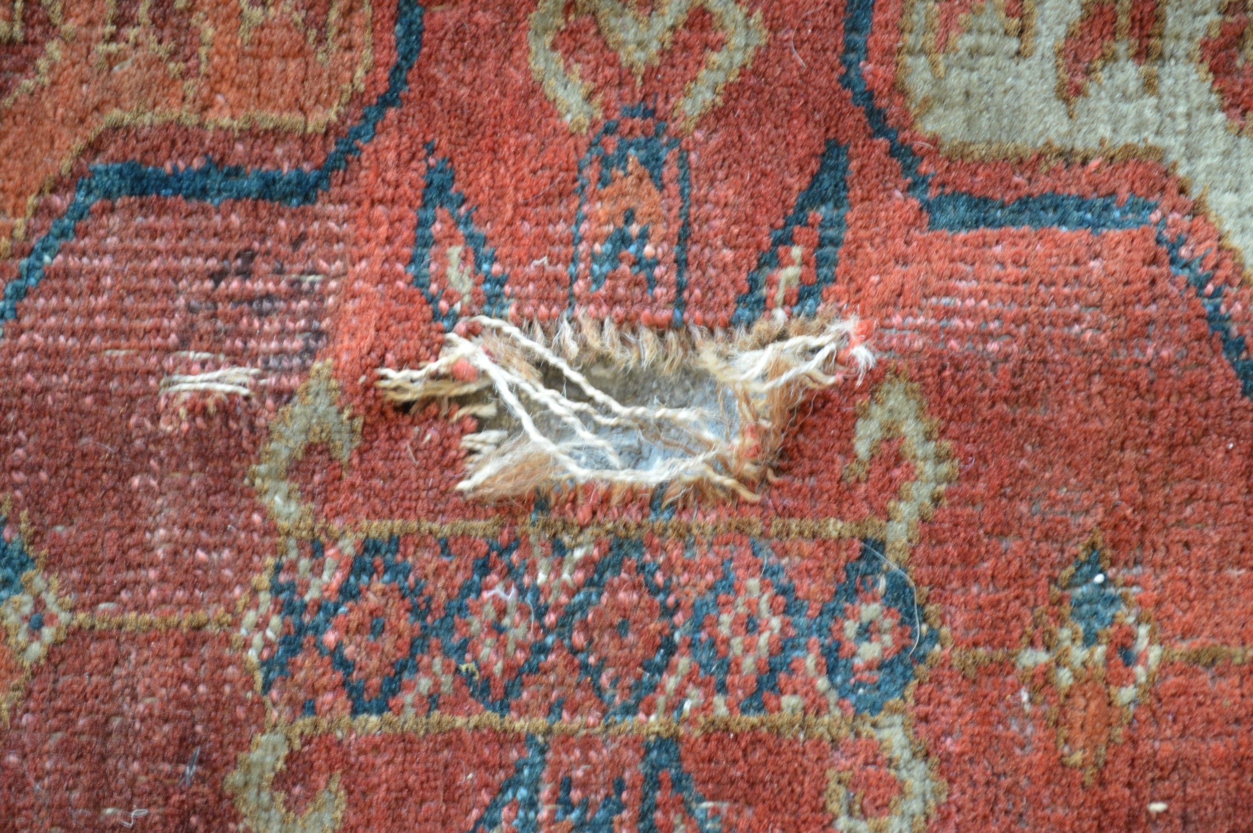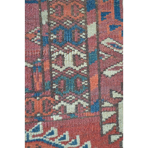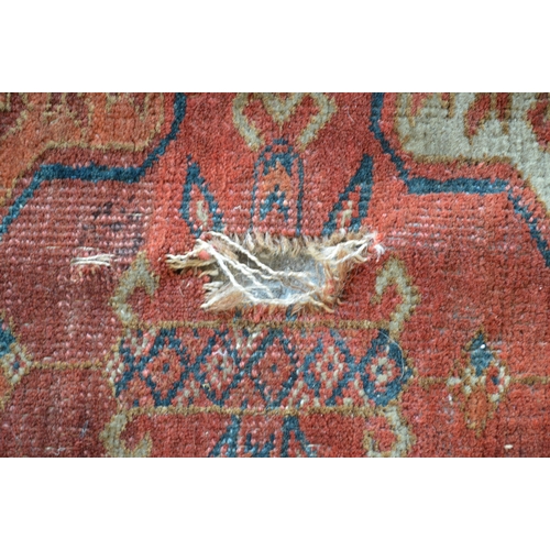 Antique Tekke carpet with four rows of ten gols on a red ground with borders (damages and wear), 245 x 195cm